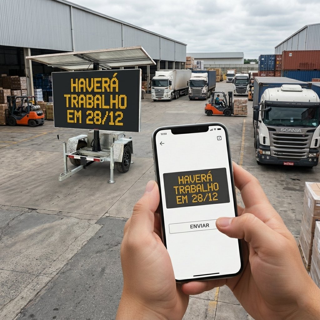 É um equipamento utilizado para sinalização e comunicação em trânsito, obras e eventos. Ele permite exibir mensagens personalizadas, atualizáveis em tempo real, com alta visibilidade.